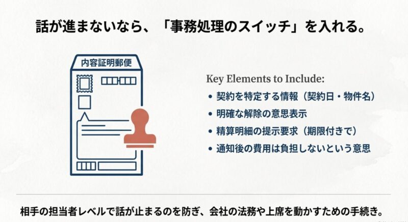 そして、口頭だけで粘られるなら、書面で淡々と進める。
