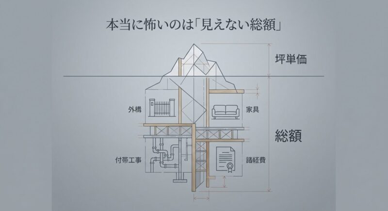 積水ハウスで資金計画が苦しくなりやすい最大の理由は、坪単価だけ見ていると総額の大きさを見誤りやすいことです。
