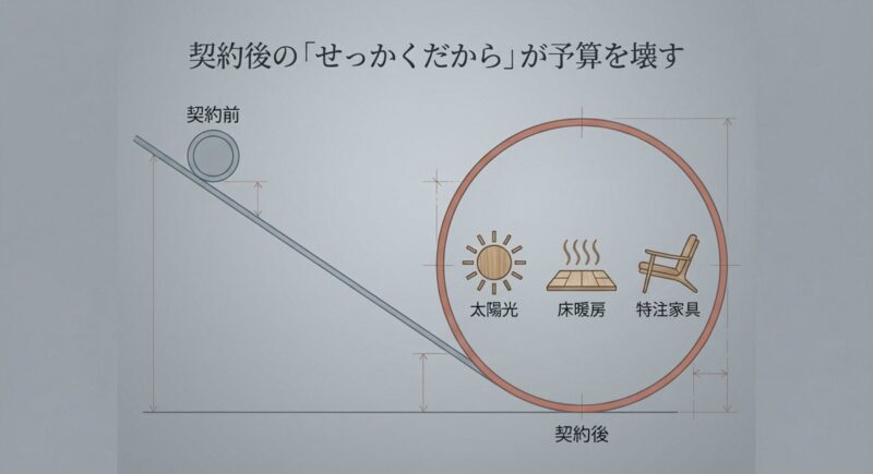 家づくりで怖いのは、契約前より契約後に金銭感覚がゆるみやすいことです。
